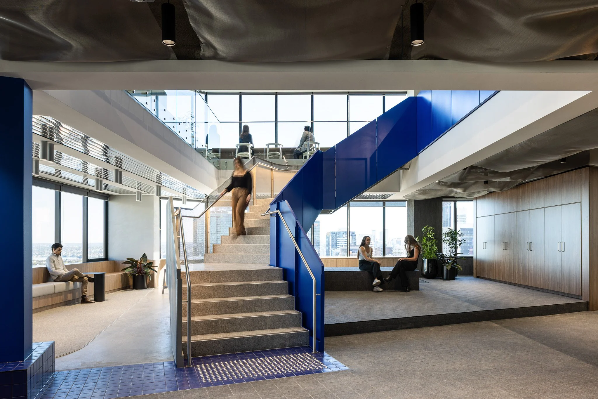 Spread across 1,600sqm, this workplace occupies Levels 29 and 30, with the lower level designed to leave a lasting first impression. Serving as an immersive experience centre for visitor's level 29 delivers an impactful introduction to the brand with incredible city views and the standout feature staircase on full display.